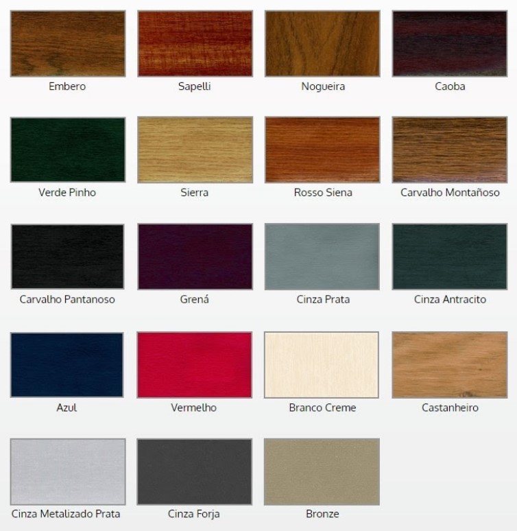 Devido às imitações da reprodução de cores, as cores aqui expostas servem apenas de referência. Não há garantias de que estas sejam rigorosamente iguais às obtidas pela aplicação dos produtos.